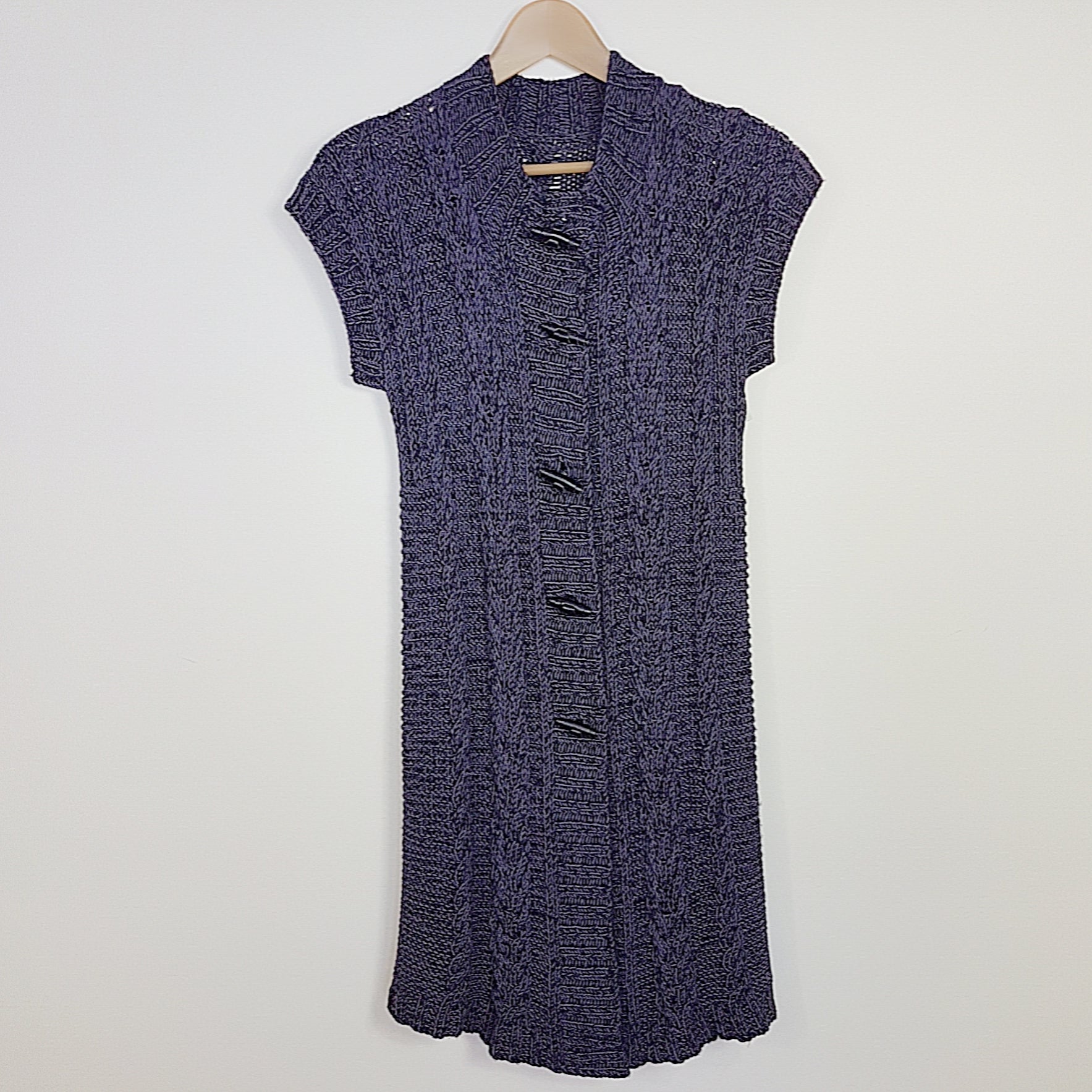 Knitted with Adorn Silky Merino DK and Adorn Silky Merino 4 ply yarn, the long cabled vest is knitted in one piece up to the armholes for minimum sewing up. Fitted at the bodice with a combination of rib and cable patterns, the vest is flattering for most shapes. It is easy to shorten the vest if desired.