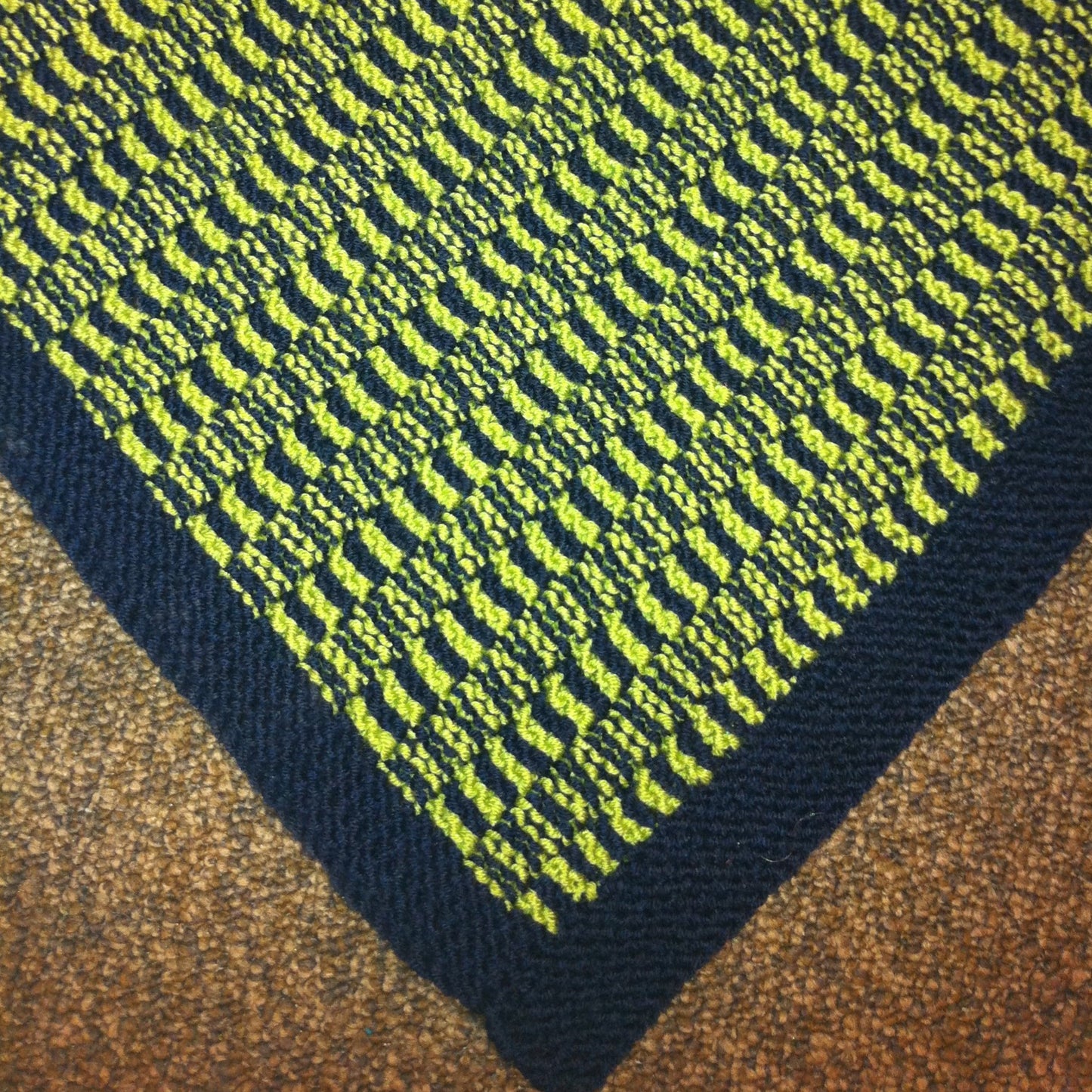 This blanket is knitted in stripes of colour however giving the clever impression of colour changing between stitches.