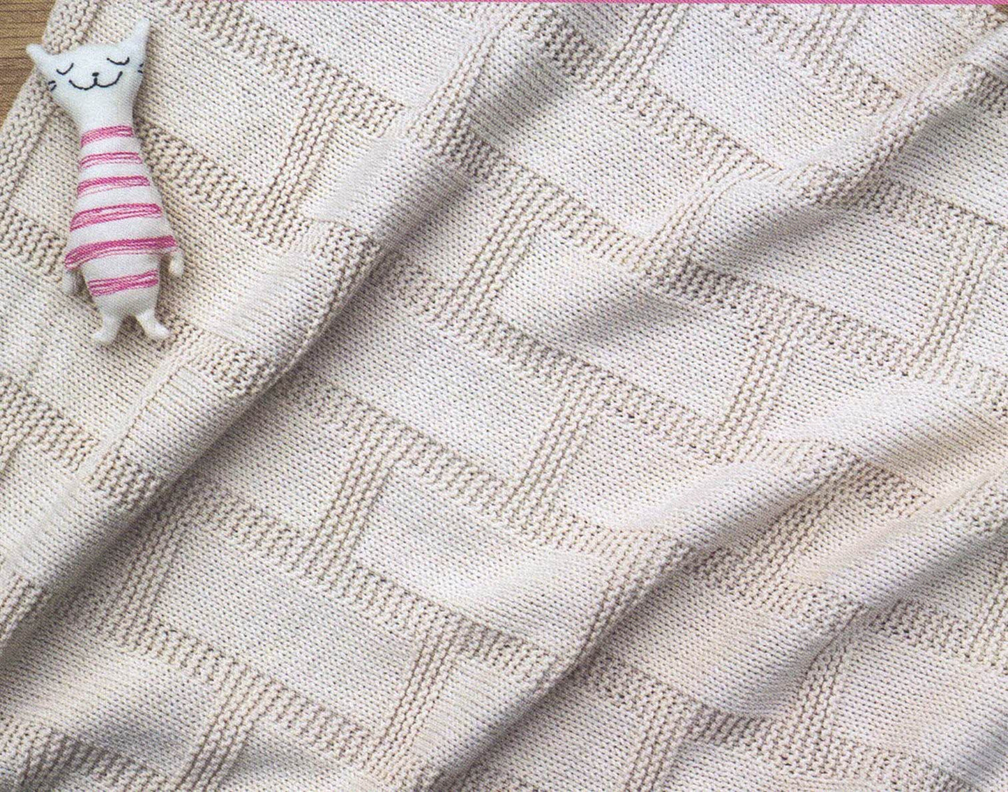 This baby blanket is suitable for new knitters. It is worked in one piece. It is knitted in 8 ply/ DK yarn and will need approx 850 metres of yarn on 4mm circular needles. The finished size is approximately 75 x 85cm.