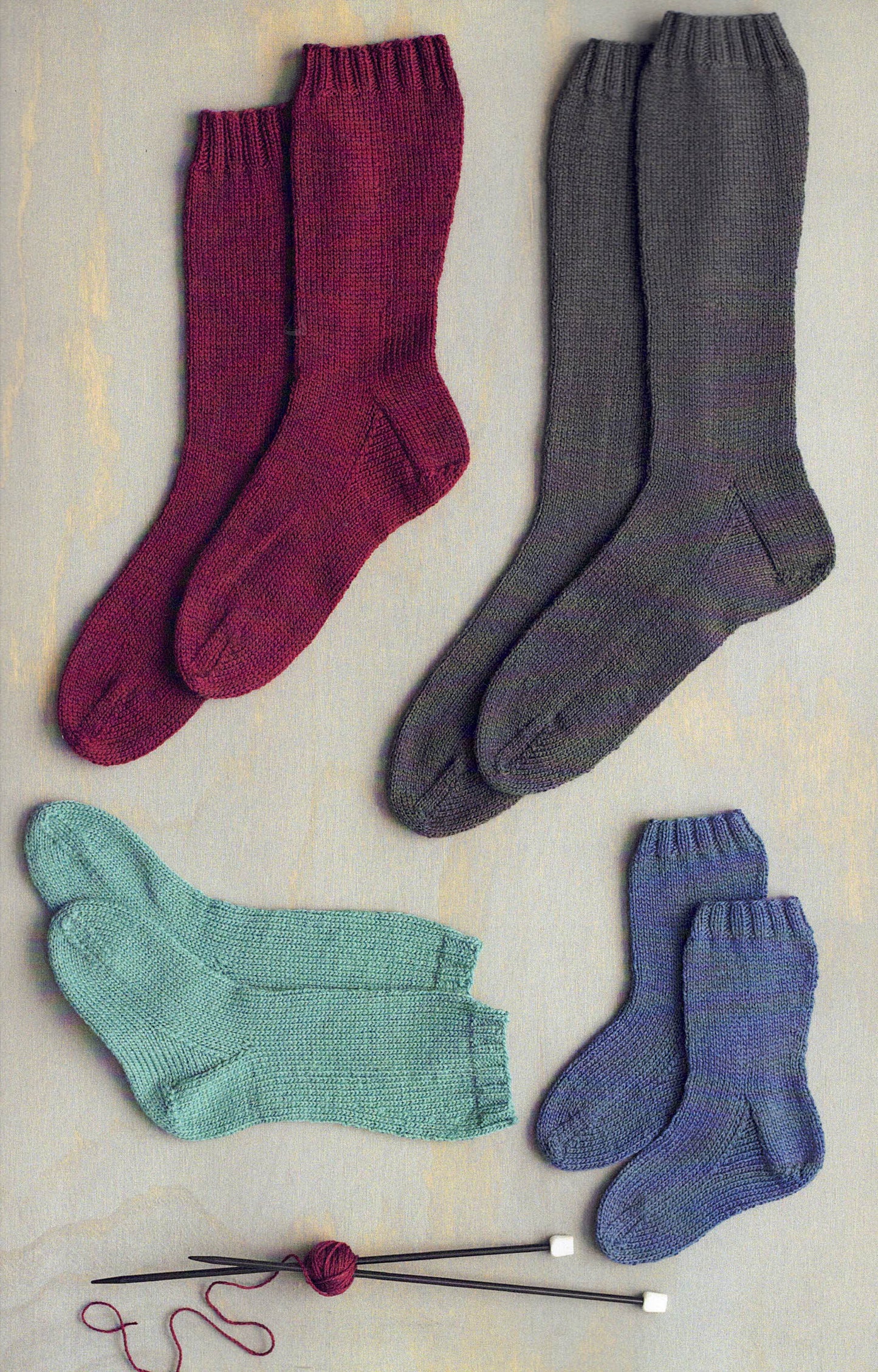 26 designs for winter. Patterns in 4ply, 5ply, 8ply, 12 ply and chunky yarn. These include scarves, socks, mittens, gloves, beanies, balaclava and helmet hat.