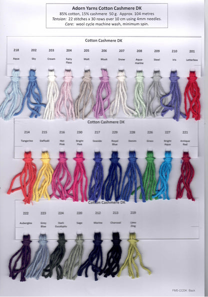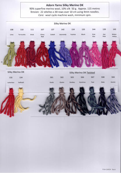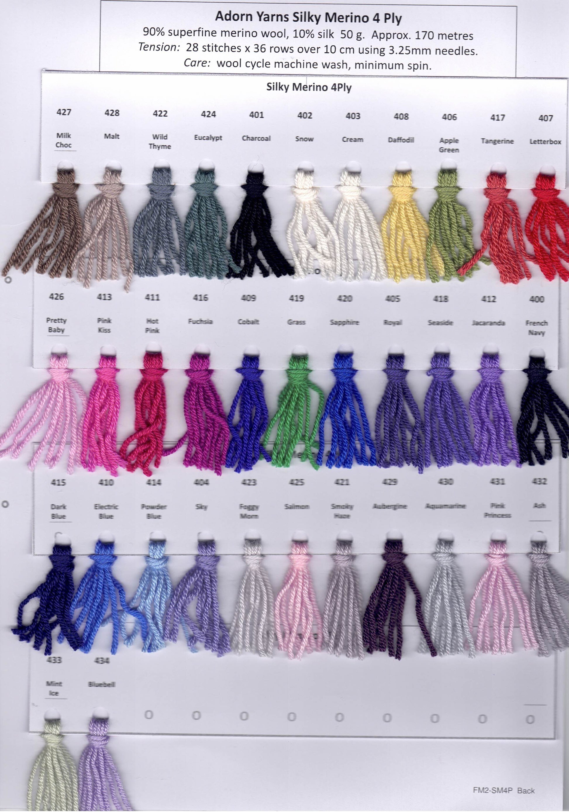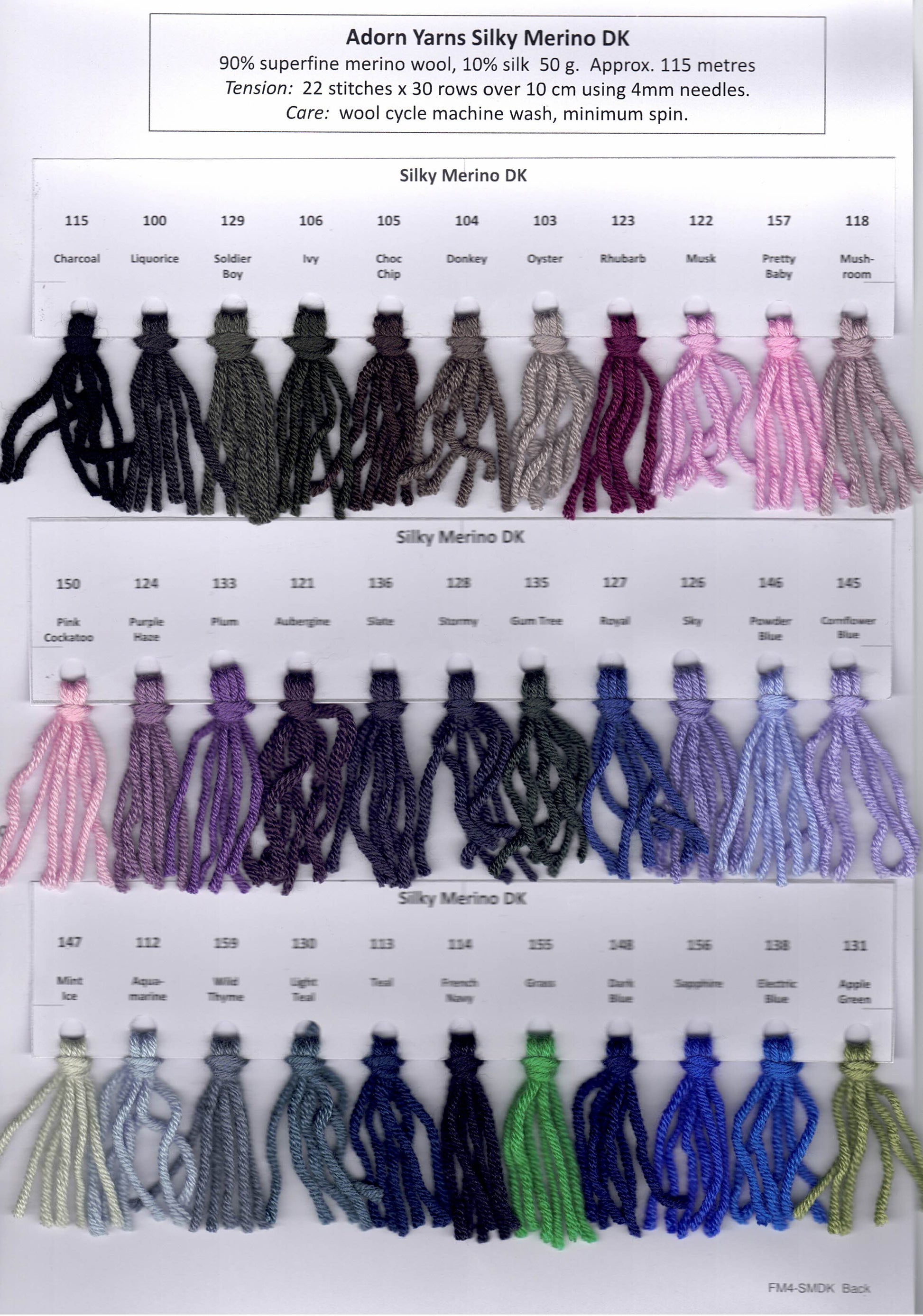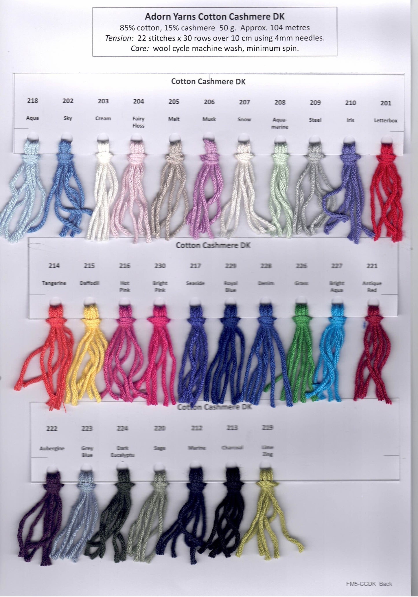 These cards have samples of the Adorn yarn colours so you can select your next project shades.