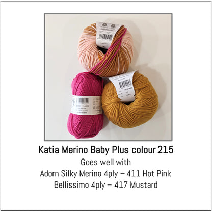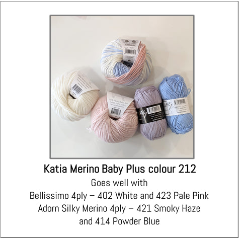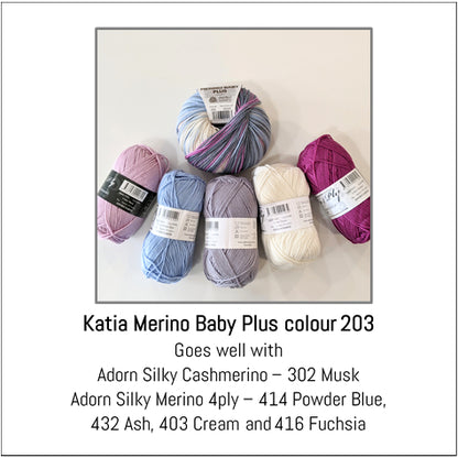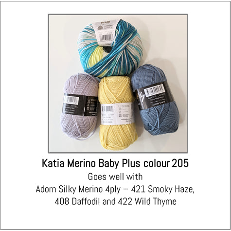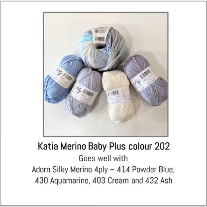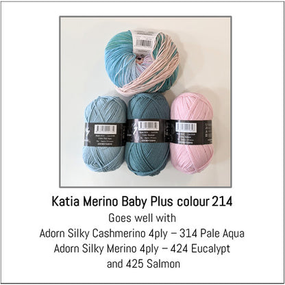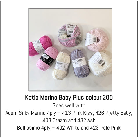 Shown in MC - Katia Merino Baby Plus colour 219 with CC - Adorn Silky Merino 4ply colour 407 Letterbox