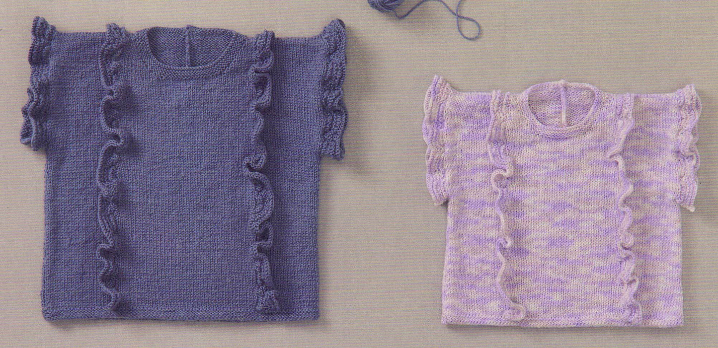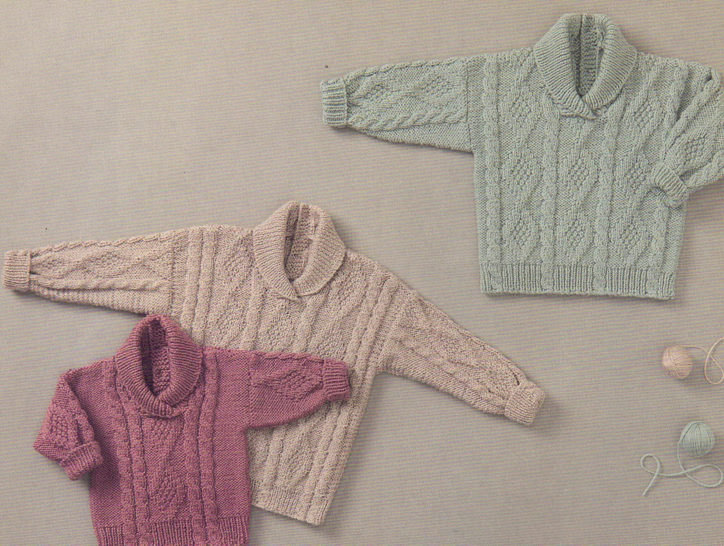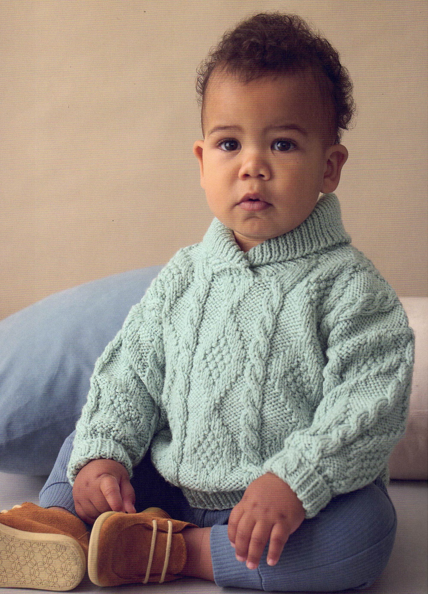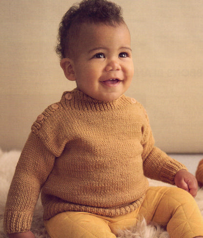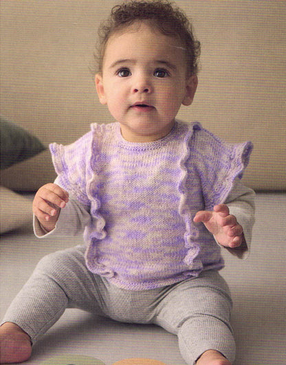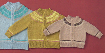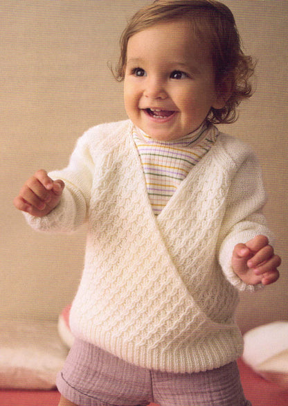 Six designs in 4 ply and 8 ply yarn for sizes 3 months to 2 years.