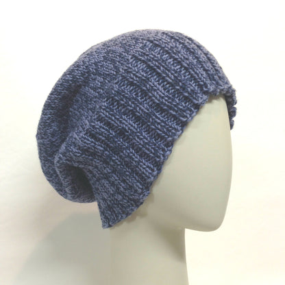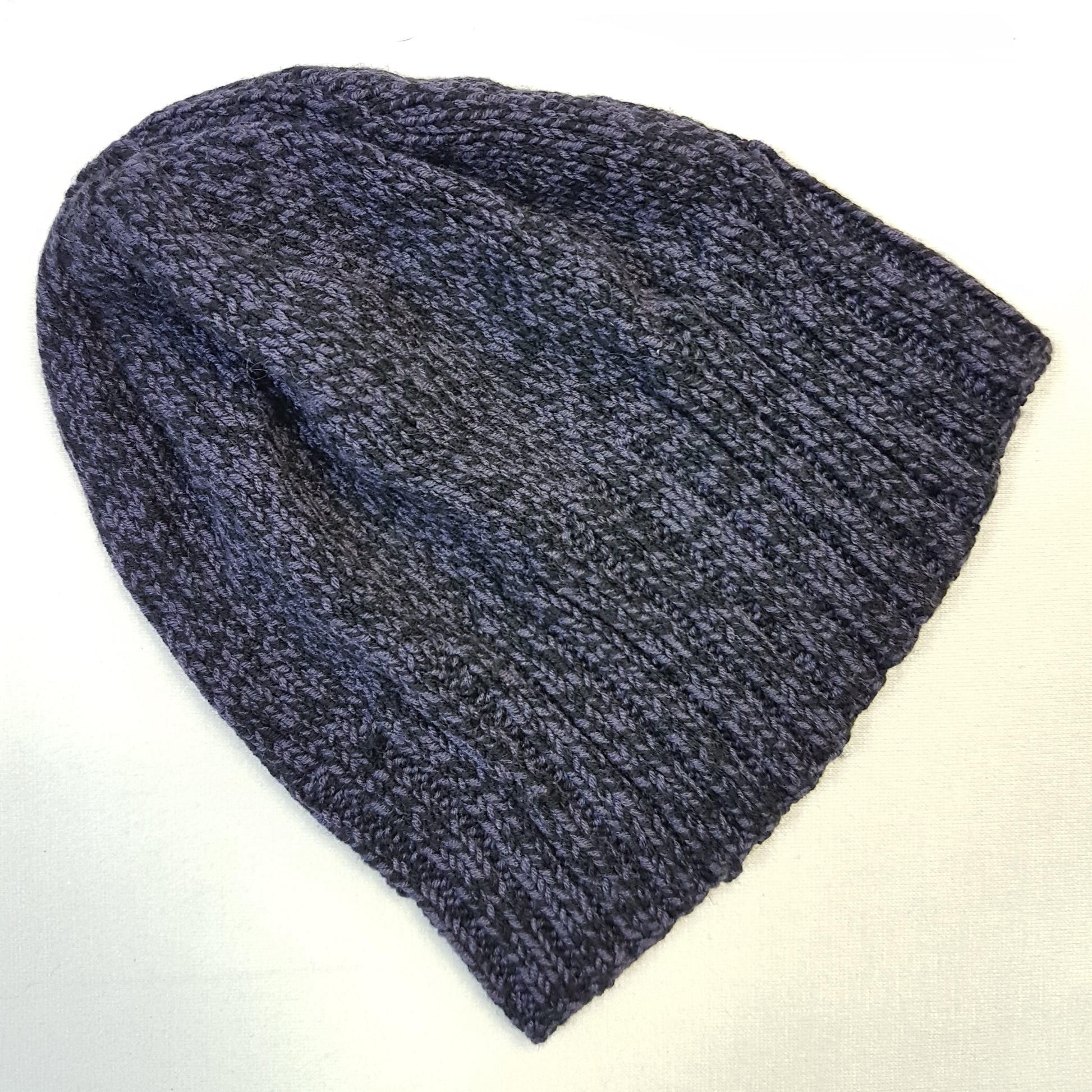 Suitable for the intermediate knitter, for ease, this beanie is worked in the round on short circular needles, followed by a set of DPNs for the shaped top (the entire beanie can be worked only on the DPNs however). It has a baggy shape at the top of the beanie.