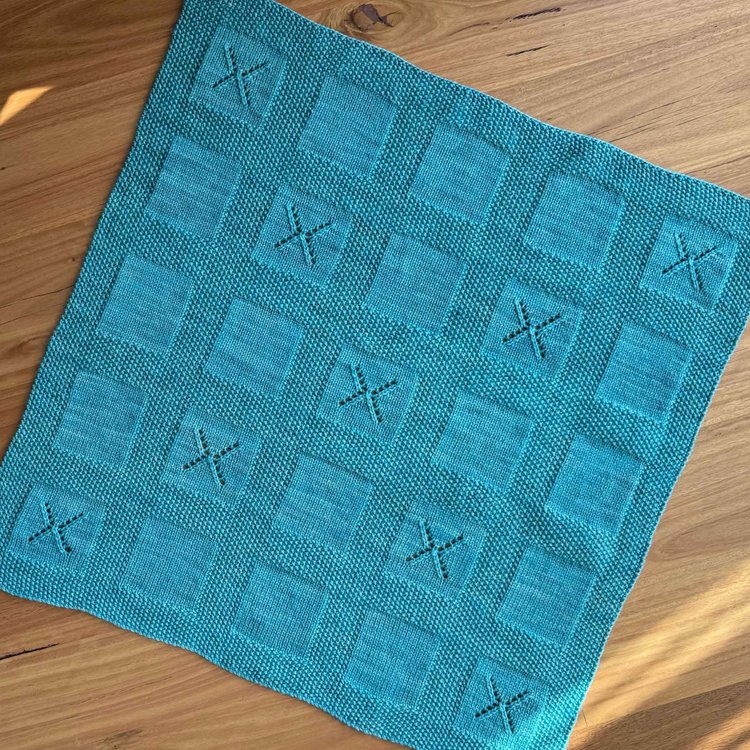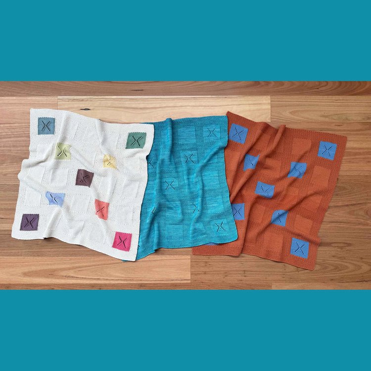 One piece baby blanket is knitted in 8ply/DK yarn. After blocking this blanket measures approx 66-69cm/26-27inches square. Single colour blanket takes approx 600-640 metrers/ 654-698 yards.