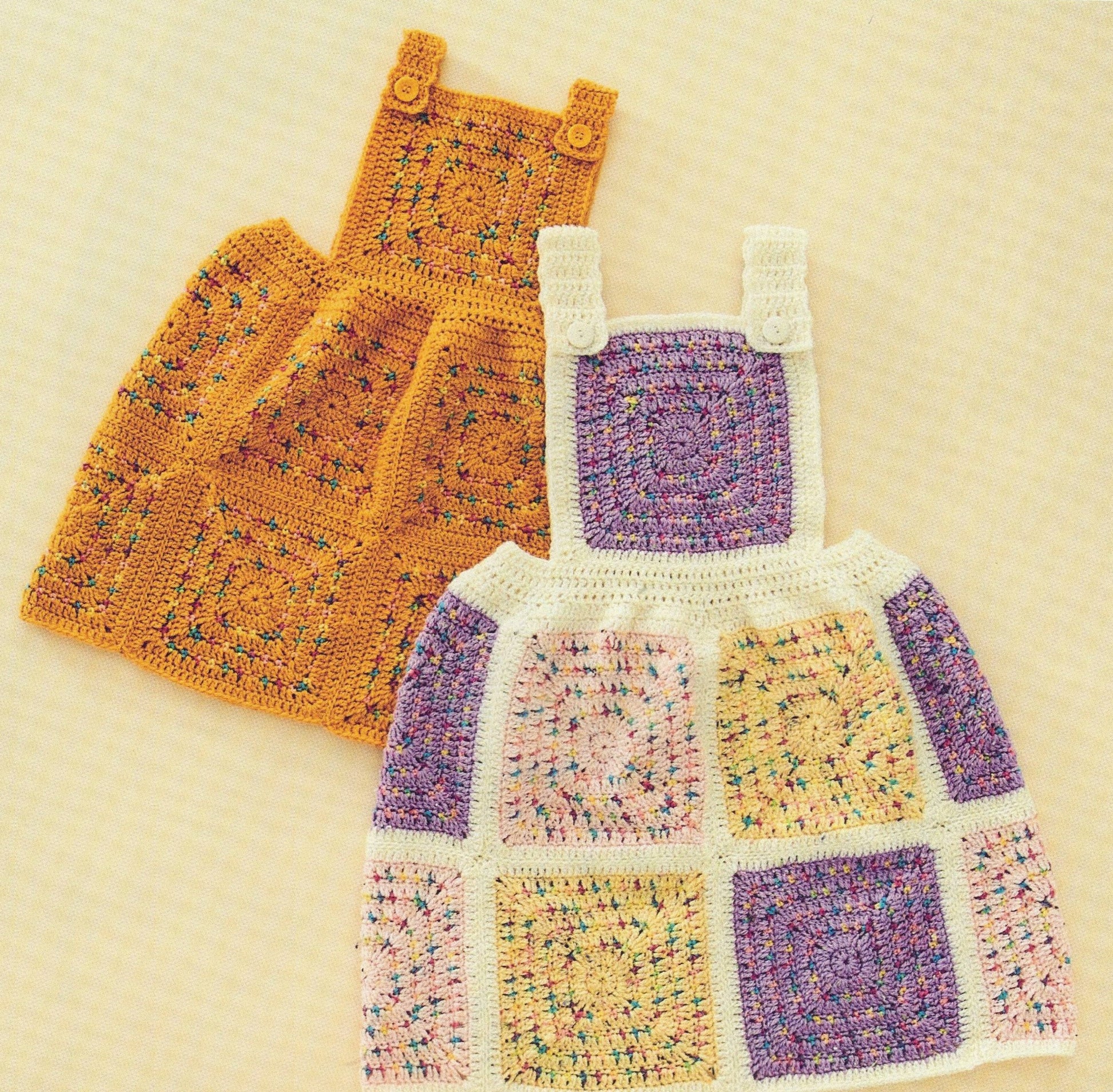 7 colourful crochet designs in 8ply. Patterns are for 4 -12 year olds and include a scarf, a poncho top, pinafore, beanie and mittens, cardigan and a jumper.