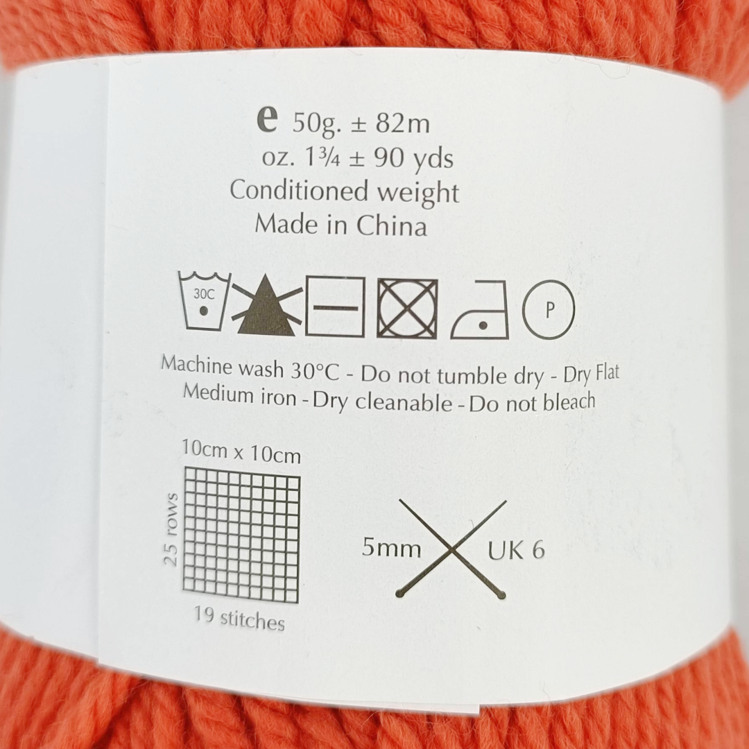 50g; Approx. 82 metres/ 90 yards. 19 sts x 25 rows over 10cm on 5mm needles. 100% Australian Fine Merino Wool. Gentle machine wash.