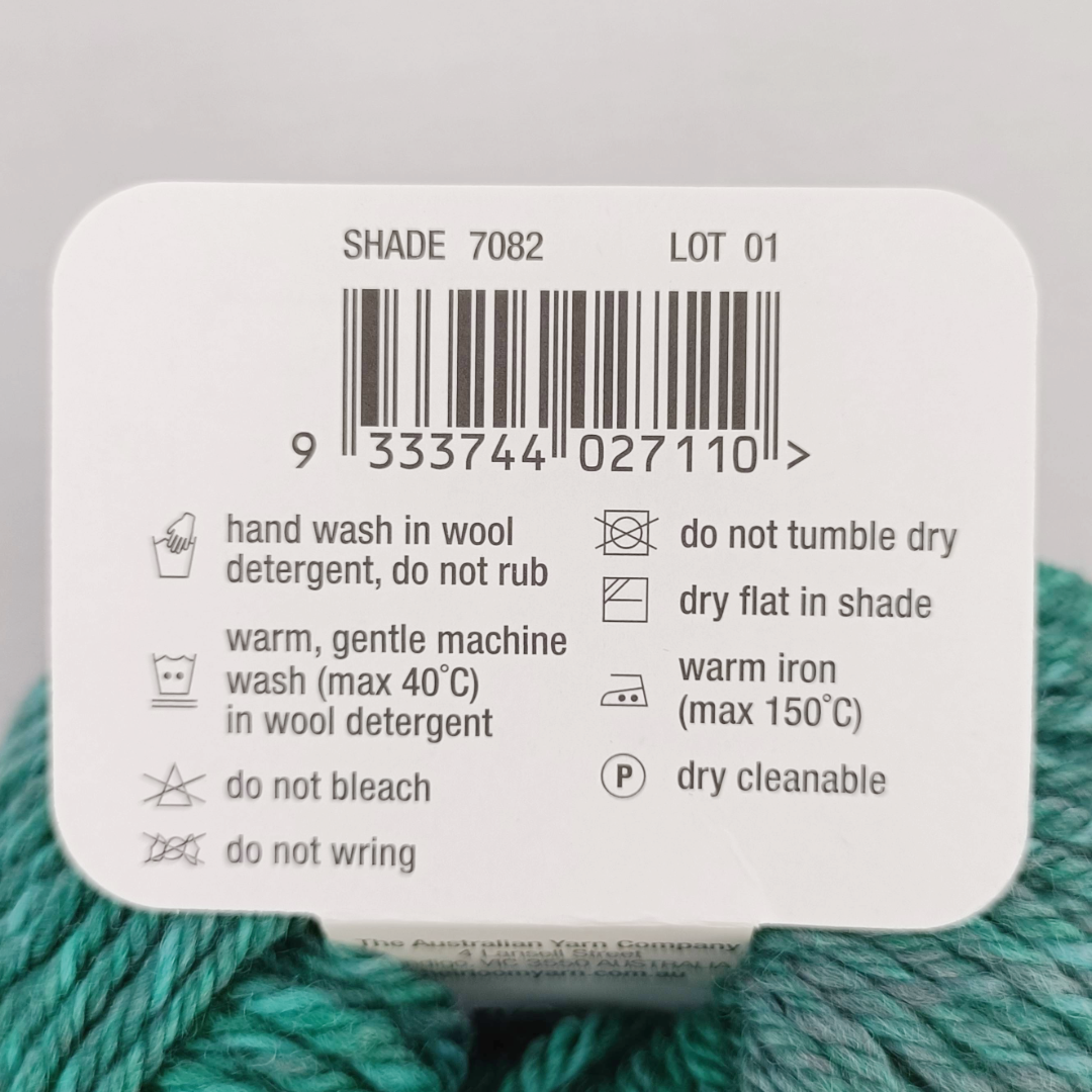 50g; approx 105metres; 100% Merino Wool. 22 sts x 30 rows on 4mm needles over 10 cm. Hand wash or warm gentle machine.