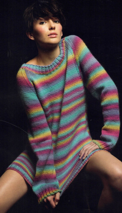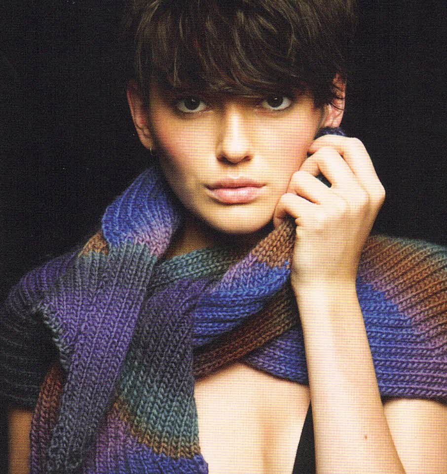 3 designs for women knitted in 8ply/DK yarn ; a shrug, scarf and dip hem jumper.