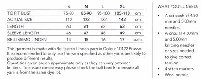 Raglan sleeve jumper knitted from the top down with no seams. This pattern is knitted in 10 ply and is for the intermediate knitter and comes in sizes S (75-80cm), M (85-90cm), L (95-100cm) and XL (105-110cm).