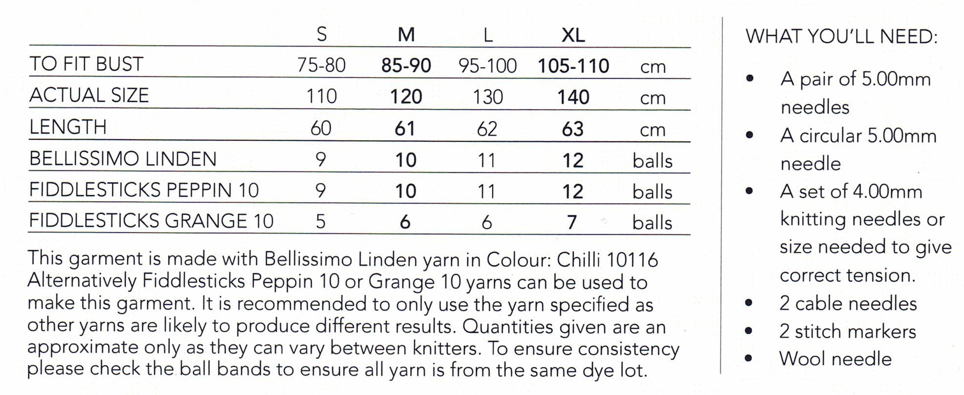 Vest with cable features knitted from top down with no seams. This pattern is for the advanced knitter. It comes in sizes S (75-80cm), M (85-90cm), L (95-100cm) and XL (105-110). It is knitted in 10 ply yarn.