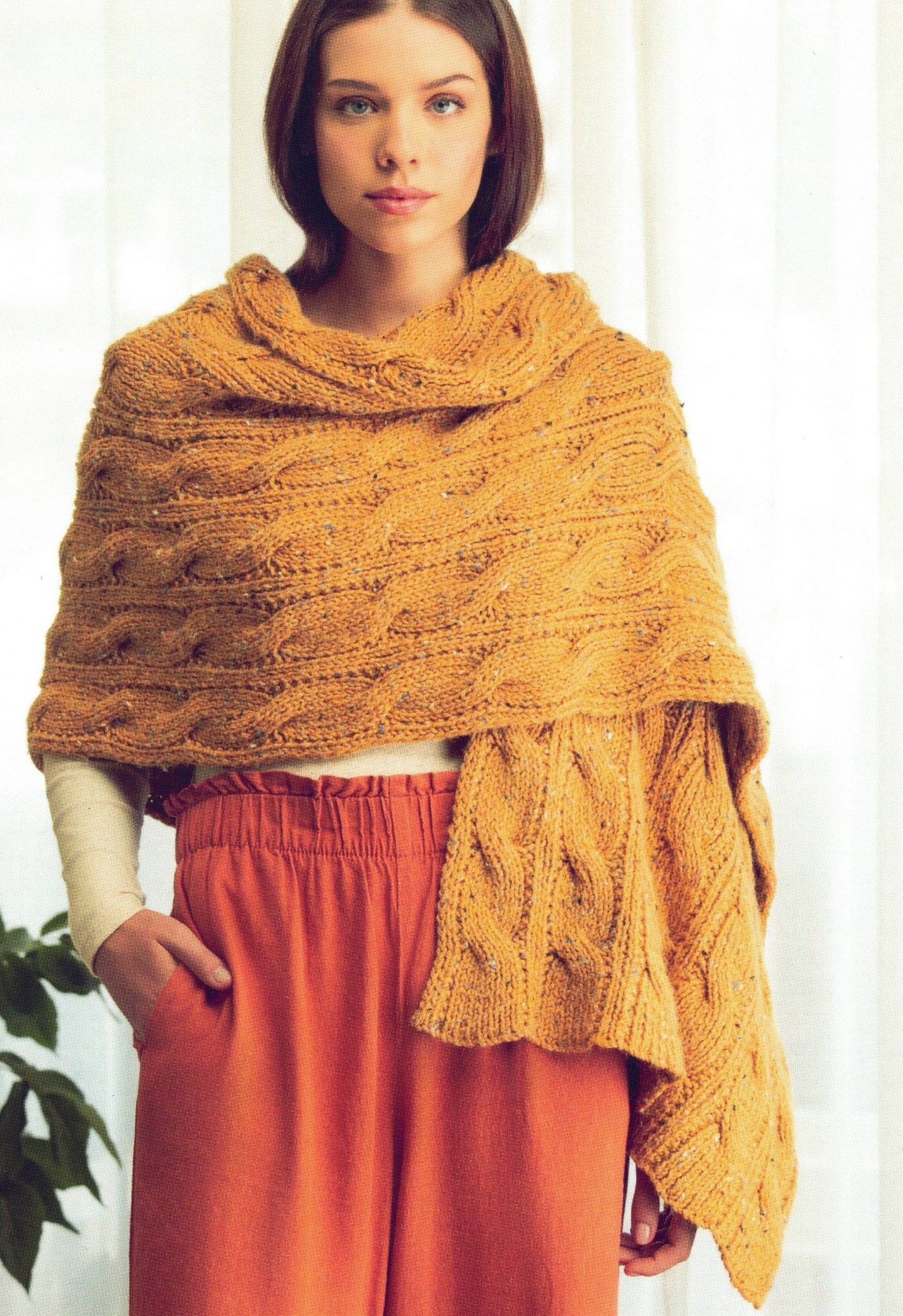 Luxurious jumper and reversible cabled wrap knit in Rodinia Tweed 10 ply. Jumper is in sizes S, M, L, XL, and XXL.