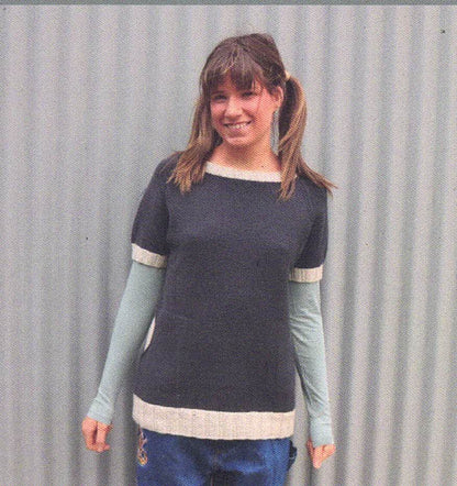 This easy-to-wear short sleeve sweater requires average to intermediate knitting skills. It is knitted in 8 ply/DK yarn and is in sizes XS - 5XL.It is knitted in pieces from the bottom with raglan sleeves and cutaway side pockets. Instructions for long sleeves are available on Debra Kinsey's website.