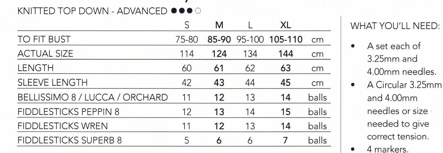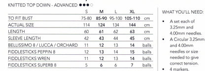 Oversized jumper knitted from the top down using 8 ply/DK yarn. It is for the advanced knitter.