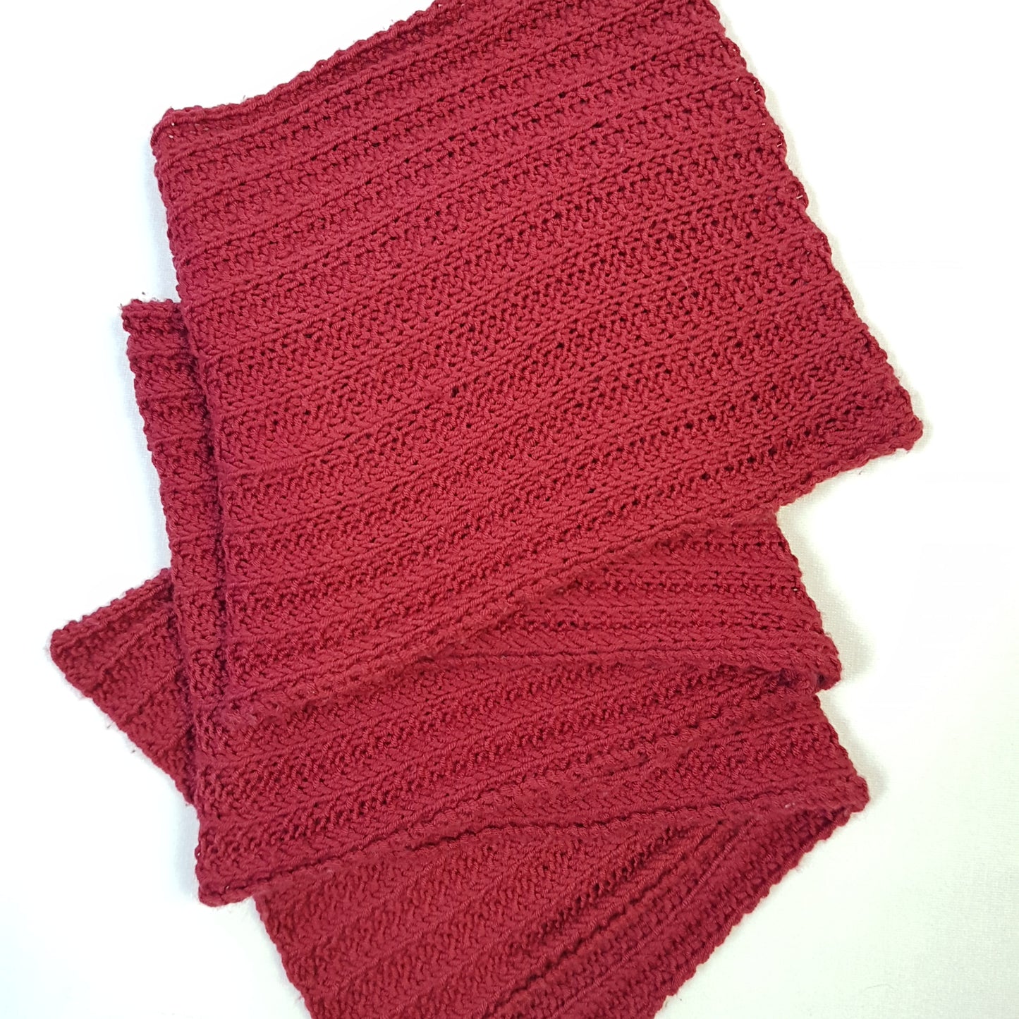 This very easy scarf has an unusual textured rib pattern that is springy to touch.